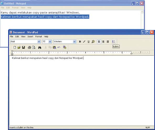Buatlah dokumen dengan menggunakan WordPad. Kemudian, gunakan fasilitas Copy – Paste dan Cut – Paste dari WordPad ke Notepad.